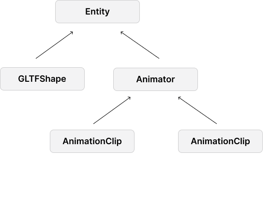 An Animator component is used to access all the animations of the entity and can be used to explicitly tell the entity to play or stop an animation. Each animation is handled by an AnimationState object.