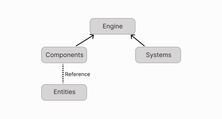 Entities may be nested inside other entities to form a tree structure. If you’re familiar with web development, you might find it useful to think of entities as elements in a DOM tree and of components as the attributes of each of these elements.