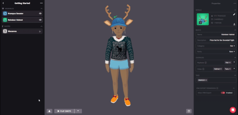 Below the thumbnail you’re going to find the properties of your wearable, number of triangles of your model, number of materials and textures.