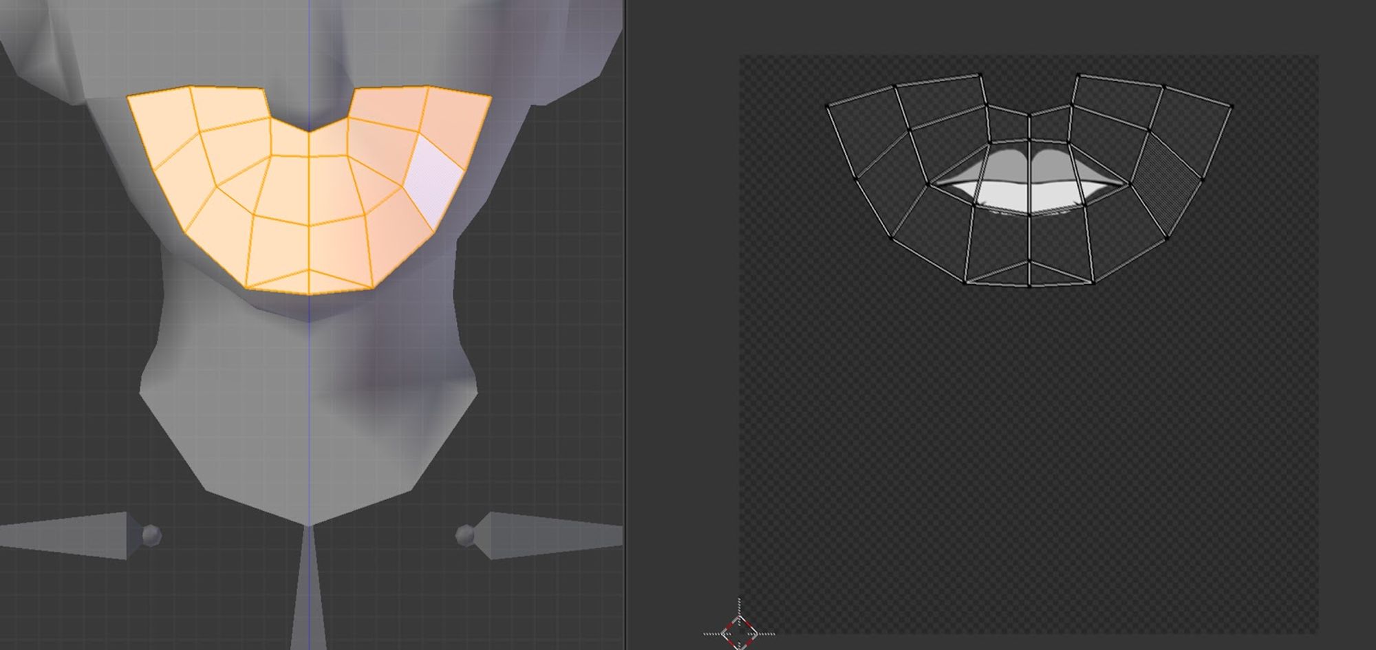 These meshes work with a transparent shader so you don’t have to do anything aside from creating your own png texture for the new eyebrow, eye, or mouth style you want and placing it correctly into the UV map. These textures should be 256x256px and need to have an alpha channel for transparency.