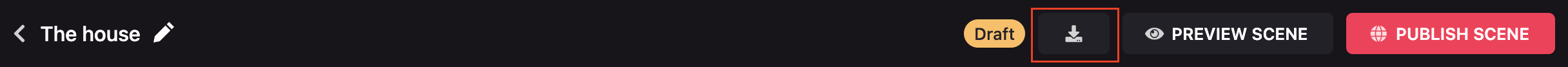 While editing a scene, press the download scene icon to download the contents of the scene as a .zip file. In the scene selector screen, you can also press the three dots icon and select Download scene.