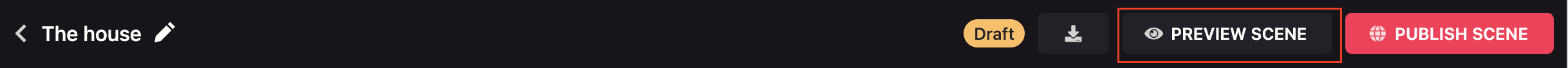 To test your scene and experience it like a player, click the Preview scene button on the top-right corner. This will open a scene preview on a new page, where you can move around the scene and interact with interactive items.